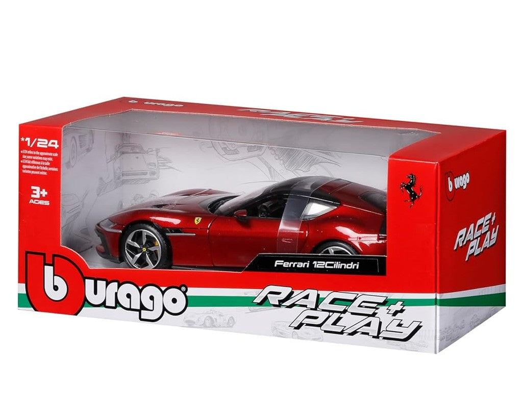 Authentic Ferrari Representation: Faithfully replicates the Ferrari 12 Cilindri’s signature styling in bold red with defined body lines and realistic proportions.